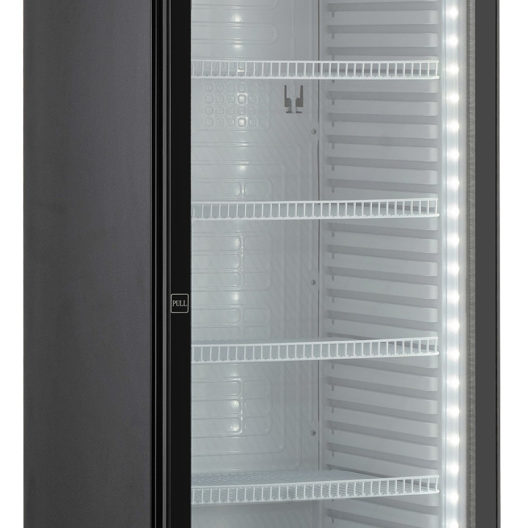Elegantni komercijalni dizajn, dvoslojno staklo i LED osvetljenje ističu njen moderan izgled, dok točkići sa kočnicama omogućavaju lako pomeranje i postavljanje u bilo kom prostoru.